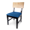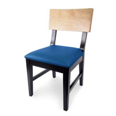 Side Chair, wood floating back, upholstered padded box seat, German beech wood, non-marring nylon glides, black. grade 2 uph
