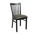 Side Chair, slat back with flared top, upholstered 2-1/2" padded seat, wood-look metal frame with walnut finish, non-marring nylon glides, upholstery to be specified