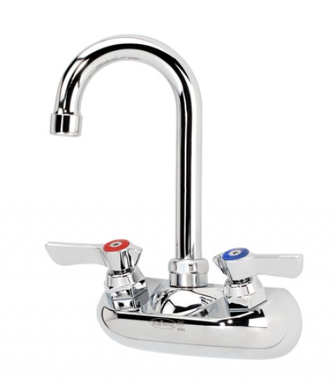 Krowne Silver Series Faucet, wall-mounted, 4" centers, 3-1/2" gooseneck spout, quarter-turn ceramic cartridge valve, includes mounting kit, chrome finish, low lead compliant, NSF, cCSAus, ADA Compliant