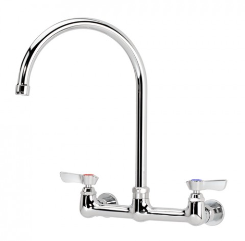 Krowne Silver Series Faucet, splash-mounted, 8" centers, 8-1/2" gooseneck spout, quarter-turn ceramic cartridge valve, low lead compliant