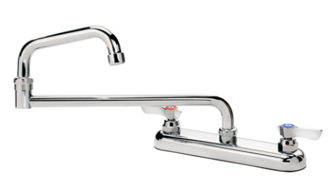 Krowne Commercial Faucet, deck mount, 8" centers, 18" jointed spout, quarter-turn ceramic cartridge valve, low lead compliant