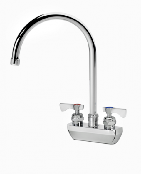 Krowne Royal Series Faucet, splash-mounted, 4" centers, 8-1/2" gooseneck spout, quarter-turn ceramic cartridge valve, low lead compliant, NSF, Includes internal check valves to prevent backflow & cross contamination