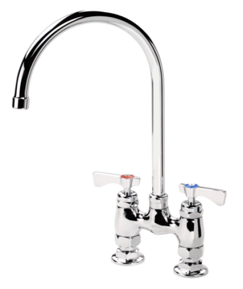 Krowne Royal Series Faucet, deck mount, 4" centers, 8-1/2" gooseneck spout, 1/4 turn ceramic cartridge valve, low lead compliant, NSF, Includes internal check valves to prevent backflow & cross contamination