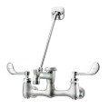 Krowne Royal Series Service Faucet, splash-mounted, 8" centers, 6-1/2" long heavy cast spout with bail hook & hose thread, wrist blade handles, bracket can mount above or below, vacuum breaker, rough chrome finish, low lead compliant, NSF, Includes internal check valves to prevent backflow & cross contamination & spout support wall bracket