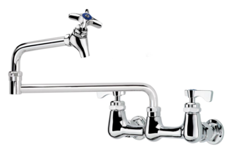 Krowne Royal Series Pot Filler Faucet, wall mount, 8" centers, 18" jointed spout with shut-off valve, ceramic cartridge valves, includes wall mounting kit, low lead compliant, includes internal check valves to prevent backflow & cross contamination