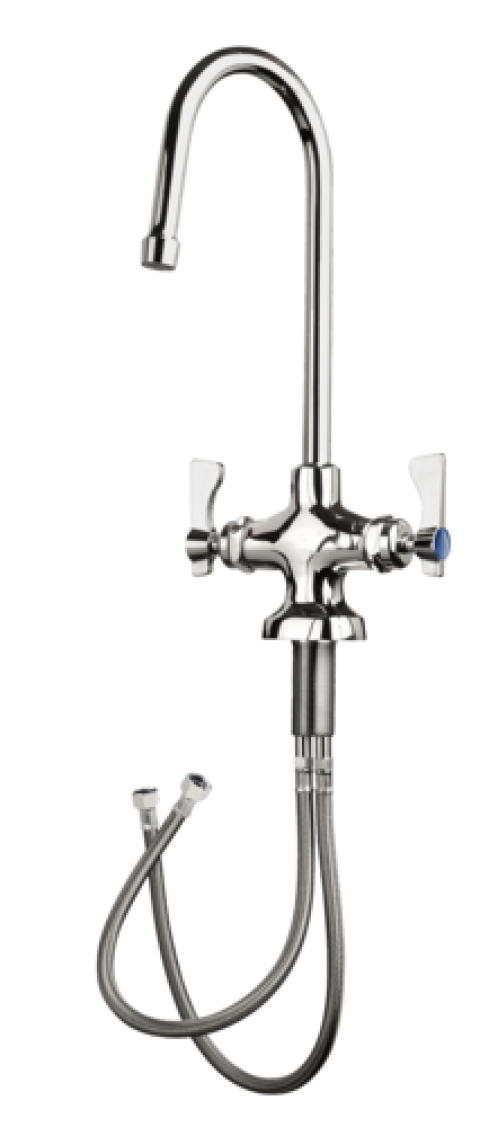 Krowne Royal Series Lavatory Faucet, single-deck mount, rigid gooseneck spout, 1/4 turn ceramic cartridge valves, includes (2) 3/8" stainless steel supply hoses, brass construction, low lead compliant, includes internal check valves to prevent backflow & cross contamination, NSF