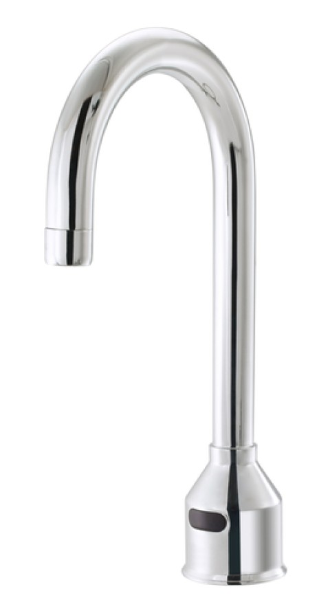 Krowne Royal Series Electronic Faucet, deck mount, single hole, 6" rigid gooseneck spout, infrared sensor, battery powered (4 AA alkaline 1.5V batteries) or power supply (AC adapter not included), low battery indicator light, 30 second time out & 1 second closing delay, includes mixing valve, internal check valves to prevent backflow & cross contamination, polished chrome finish, NSF, cCSAus, ADA Compliant