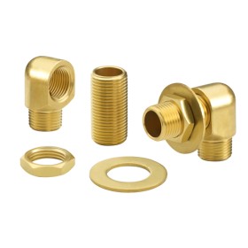 Krowne Royal Series Mounting Kit, (2) 90 degree elbows with 1/2" NPT male inlet & 1/2" NPT female outlet, (2) 1/2" NPT supply nipples, (2) washers, (2) locknuts