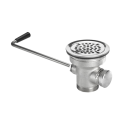Krowne Twist Waste Valve with 1-1/4" Overflow Outlet, 3" sink opening, 2" NPS male threaded with 1-1/2" female threaded drain outlet (no adapter required), 1-1/2" reducer with rubber washer, 4-1/2" flange, stainless steel strainer, flange & handle