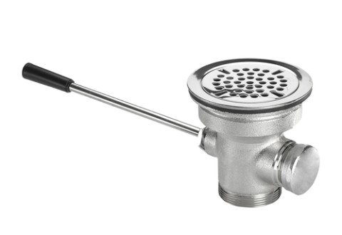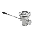 Krowne Lever Waste Valve, 3-1/2" sink opening, 2" NPS drain outlet, 1-1/2" reducer with rubber washer, 4-1/2" flange, stainless steel strainer & handle, 1-1/4" overflow outlet with cap drain outlet: 2" NPS outer threads & 1-1/2" female inner threads (overflow outlet accepts overflow head model# 22-500 & overflow elbow model# 22-501)