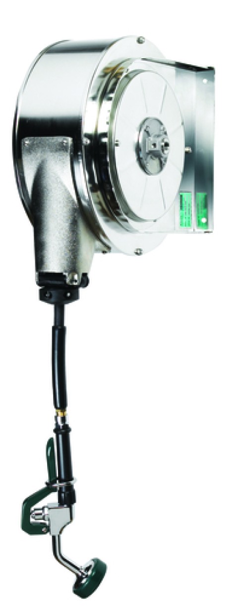 Krowne Royal Series Pre-Rinse Hose Reel Assembly, enclosed stainless steel hose reel