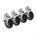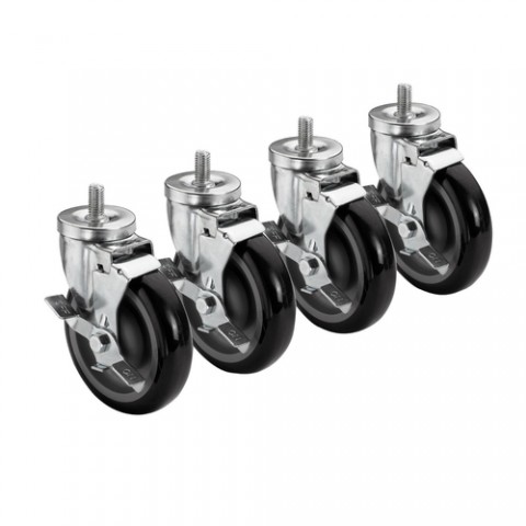 Krowne Threaded Stem Caster, swivel with brake, 5" diameter, 5/8"-11 x 1" threaded stem, 220 lbs per caster load capacity, grease resistant, raises height of equipment 6" (set of 4)