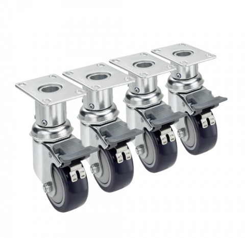 Krowne Adjustable Height Plate Caster, 6" to 7" height adjustment, swivel with lock, 3" diameter, 2-3/8" x 3-5/8", 220 lbs per caster load capacity, grease resistant (set of 4)