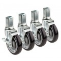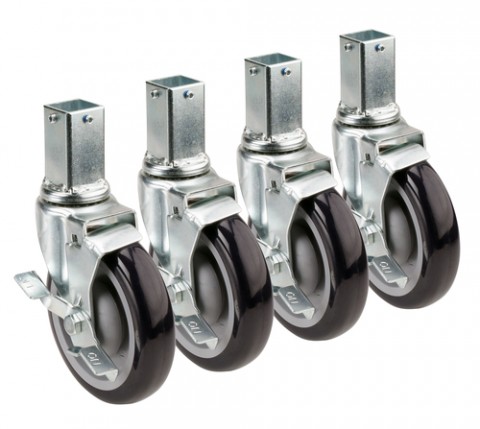 Krowne 1" Square Post Shelving Caster, locking wheels, 5" diameter, 220 lbs per caster load capacity, grease resistant, raises height of equipment 6", fits AMCO Shelving (set of 4)