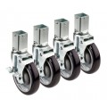Krowne 1-1/4" Square Post Shelving Caster, locking wheels, 5" diameter, 220 lbs per caster load capacity, grease resistant, raises height of equipment 6", fits Cambro Camshelving® plastic shelving (set of 4)
