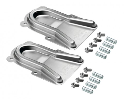 Krowne Stainless Steel Caster Positioning Set, includes (2) stainless steel chocks, (8) hex screws & (8) drop-in anchors