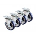 Krowne Economy Series 2-3/8" x 3-5/8" Plate Caster, swivel with brake, 5" diameter, 1-3/4" x 3" hole centers, 200 lbs. per caster load capacity (set of 4)