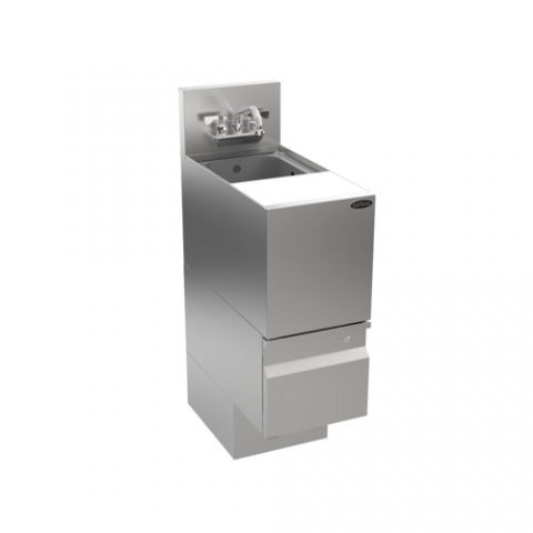 Alchemy Series Underbar Speed Station/Dump sink & cutting board, 12"W x 24"D x 32.5"H, , 10" x 12" x 7" deep sink bowl, splash mount quick release faucet, 1-1/2" center drain, stainless steel construction with adjustable bullet feet