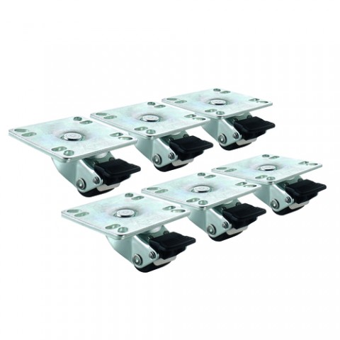 Casters, 1" Ultra low profile with brakes (set of 6), plate, raises unit 2"
