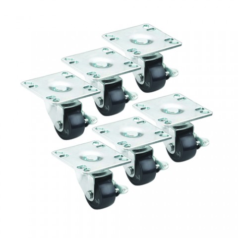Casters, 2" low profile with brakes (set of 6), plate, raises unit 3"