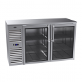Refrigerated Back Bar Storage Cabinet, two-section, 60"W x 24"D, side mounted self-contained refrigeration, 30°F to 40°F temperature range, (2) hinged doors with locks, (2) adjustable shelves & floor rack per door, digital thermostat, LED interior lights, includes condensate evaporator pan, stainless steel interior, R290 Hydrocarbon refrigerant, 1/4 HP, 115v/60/1-ph, 2.2 amps, cord with NEMA 5-15P, NSF7 Open Food Certified, ETL-Sanitation, ETLus