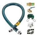 Royal Series Moveable Gas Connection Kit for Canada, 3/4” I.D., 60” long, stainless steel corrugated tubing & radial wrap with green antimicrobial PVC coating, quick disconnect, (1) full port gas valve, (2) 90° elbows with female fittings, (2) threaded nipples, restraining cable with mounting hardware, 158,000 BTU/hr minimum flow capacity