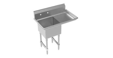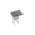 Royal Series 1-Compartment Commercial Sink with right drainboard, 39"W x 24"D x 43"H, 18"x 18" deep bowl with 4.5" drain, 38" working height, 18 gauge 304 Series Stainless Steel construction, stainless steel legs with adjustable thermoplastic bullet feet