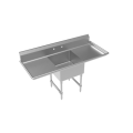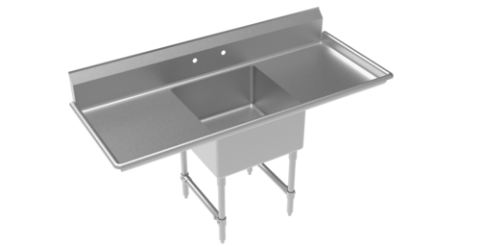Royal Series 1-Compartment Commercial Sink with left & right drainboards, 72"W x 24"D x 43"H, 24"x 24" deep bowl with 4.5" drain, 38" working height, 18 gauge 304 Series Stainless Steel construction, stainless steel legs with adjustable thermoplastic bullet feet