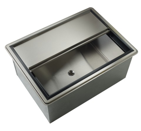 Krowne Ice Bin, drop-in, 10-circuit cold plate, 27"W x 20"D O.A., 73 lbs ice capacity, 10" deep stainless steel liner, fully insulated, stainless steel top, includes stainless steel sliding cover, NSF (25-1/4" x 18-1/4" cutout required)