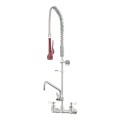 Diamond Series Pre-Rinse Assembly, with add-on faucet, wall-mount, 8" centers, 38"H with 15" overhang, 1.15 GPM dual spray head, built-in check valves, polished chrome finish add-on faucet with 12” swing spout, includes wall bracket & mounting kit, ultra-polished satin finish base, low lead compliant, includes internal check valves to prevent backflow & cross contamination, NSF, cCSAus, ADA Compliant (interchangeable with most brands) (ships pre-assembled)