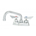 Krowne Diamond Series Faucet, Deck Mount, 4" Centers, 6" swing spout, 1.8GPM aerator, ultra-polish satin finish, Solid chrome plated brass base, lever handles, stainless steel 1/4 turn high-performance ceramic cartridge valves with integral check valve to prevent cross-contamination, 1/2" NPT male, (2) 3/8" stainless steel braided flexible supply hoses, Includes 1/2" NPT Close elbows w/ swivel compression fittings on faucet side, and 3/8" compression fitting on water supply side, includes mounting nipples, washer, and lock nuts, LIFETIME WARRANTY, NSF, CSA