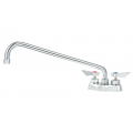Krowne Diamond Series Faucet, Deck Mount, 4" Centers, 16" swing spout, 1.8GPM aerator, ultra-polish satin finish, Solid chrome plated brass base, lever handles, stainless steel 1/4 turn high-performance ceramic cartridge valves with integral check valve to prevent cross-contamination, 1/2" NPT male, (2) 3/8" stainless steel braided flexible supply hoses, Includes 1/2" NPT Close elbows w/ swivel compression fittings on faucet side, and 3/8" compression fitting on water supply side, includes mounting nipples, washer, and lock nuts, LIFETIME WARRANTY, NSF, CSA