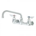 Krowne Diamond Series Faucet, wall-mounted, 8" centers, 8” swing spout, quarter-turn stainless steel ceramic cartridge valve, includes internal check valves to prevent backflow & cross contamination, ultra-polish satin finished brass, low lead compliant, NSF, cCSAus, ADA Compliant