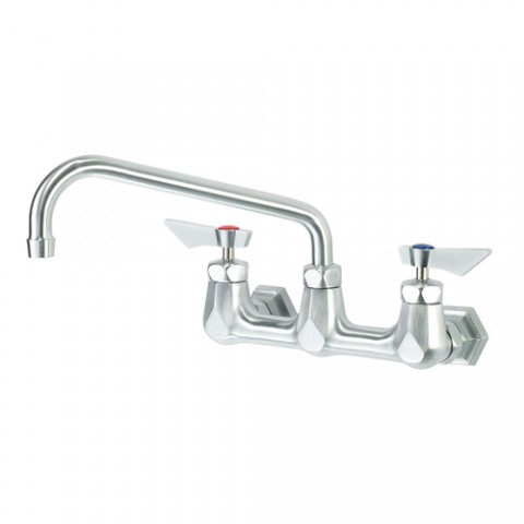 Krowne Diamond Series Faucet, wall-mounted, 8" centers, 10” swing spout, quarter-turn stainless steel ceramic cartridge valve, includes internal check valves to prevent backflow & cross contamination, ultra-polish satin finished brass, low lead compliant, NSF, cCSAus, ADA Compliant