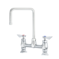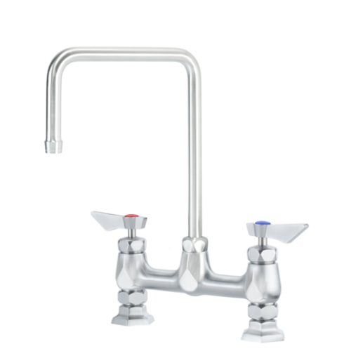 Krowne Diamond Series Faucet, Raised Deck Mount, 8" Centers, 8 1/2" Wide Double Bend Spout, 1.8GPM Aerator, Ultra-Polish Satin Finish, Solid Chrome Plated Brass Base, Lever Handles, Stainless Steel 1/4 Turn High-Performance Ceramic Cartridge Valves with Integral Check Valve to Prevent Cross-Contamination, 1/2" NPT Male, (2) 3/8" Stainless Steel Braided Flexible Supply Hoses, Includes 1/2" NPT Close Elbows w/ Swivel Compression Fittings on Faucet Side, and 3/8" Compression Fitting on Water Supply Side, Includes Mounting Nipples, Washer, and Lock Nuts, LIFETIME WARRANTY, NSF, CSA
