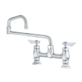 Krowne Diamond Series Faucet, Raised Deck Mount, 8" Centers, 18" Jointed Swing Spout, 1.8GPM Aerator, Ultra-Polish Satin Finish, Solid Chrome Plated Brass Base, Lever Handles, Stainless Steel 1/4 Turn High-Performance Ceramic Cartridge Valves with Integral Check Valve to Prevent Cross-Contamination, 1/2" NPT Male, (2) 3/8" Stainless Steel Braided Flexible Supply Hoses, Includes 1/2" NPT Close Elbows w/ Swivel Compression Fittings on Faucet Side, and 3/8" Compression Fitting on Water Supply Side, Includes Mounting Nipples, Washer, and Lock Nuts, LIFETIME WARRANTY, NSF, CSA