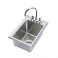 Drop-In Hand Sink, 12"W x 18"D x 5"H OA, 10" wide x 14" front-to-back x 5" deep compartment, 4" OC deck mount faucet with 6" gooseneck spout (low lead compliant), 3-1/2" drain, stainless steel construction, NSF (10-1/2"W x 16-3/4"D cut-out required)