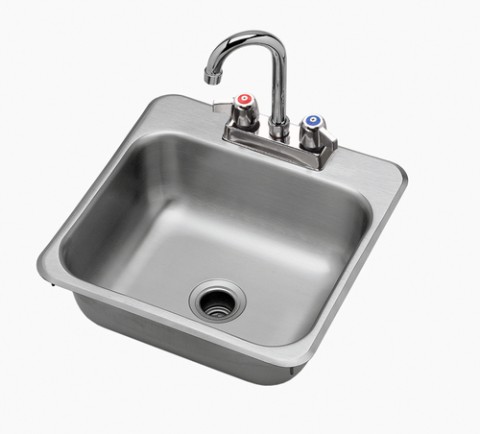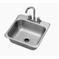 Drop-In Hand Sink, 15"W x 15"D x 5-3/16"H OA, 12" wide x 10" front-to-back x 5-3/16" deep compartment, 4" OC deck mount faucet with 4-1/2" double bend spout (low lead compliant), 1-1/2" drain, stainless steel construction, NSF