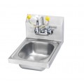 Hand Sink/Eyewash Station, wall mount, 12"W x 14-1/4"D x 13-3/8"H OA, 9" wide x 9" front-to-back x 5" deep bowl, 4" OC splash mount gooseneck faucet with eyewash attachment (low lead compliant), 7-3/4" backsplash, 1-1/2" drain with overflow & P-trap, stainless steel construction, mounting bracket included, NSF