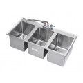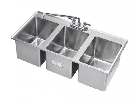 Drop-In Sink, three-compartment, 36"W x 18"D x 10"H OA, (3) 10" wide x 14" front-to-back x 10" deep compartments, 4" OC deck mount faucet with 14" swing spout (low lead compliant), (3) 3-1/2" drains, stainless steel construction, NSF (34-1/4"W x 16-3/4"D cut-out required)