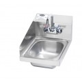 Space Saver Hand Sink, wall mount, 12"W x 14-1/4"D x 13-3/8"H, 9" wide x 9" front-to-back x 5" deep bowl, 4" OC splash mount faucet, 4-1/2" double bend faucet (low lead compliant), 7-3/4"H backsplash & side splash on left side, includes mounting bracket, stainless steel construction, NSF