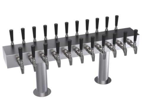 Krowne Double Sided T-Head Tower, twenty-two faucets, handles and faucets not included, OA length 36", glycol cooled, brushed stainless steel finish