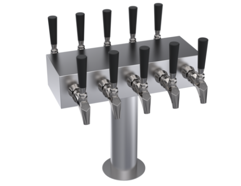 Krowne Double Sided T-Head Tower, ten faucets, handles and faucets not included, OA length 15", glycol cooled, brushed stainless steel finish