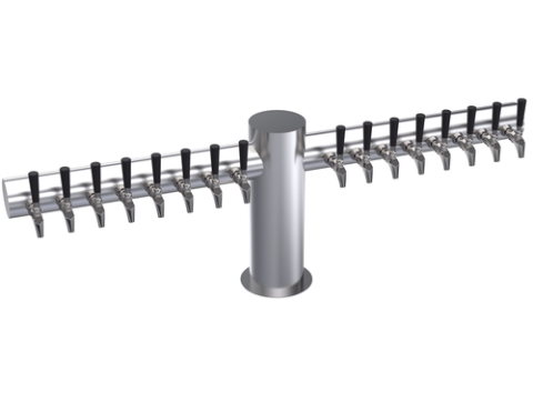 Krowne Max-T Style Tower, sixteen faucets, handles and faucets not included, 57" outside flange to outside flange, glycol cooled, brushed stainless steel finish
