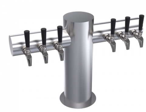 Krowne Max-T Style Tower, six faucets, handles and faucets not included, 27" outside flange to outside flange, glycol cooled, brushed stainless steel finish