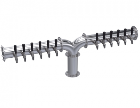 Krowne Pipe Y-Tower, twelve faucets, handles and faucets not included, 54" OA length, glycol cooled, brushed stainless steel finish