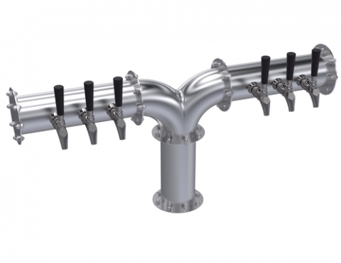 Krowne Pipe Y-Tower, six faucets, handles and faucets not included, 36" OA length, glycol cooled, brushed stainless steel finish