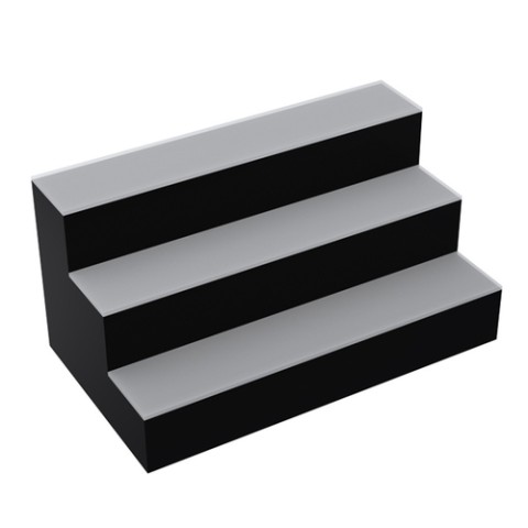 Royal Series Lighted Countertop Liquor Display, 3-tier, 24"W, (2) wireless remotes, (18) bottle capacity, multi-color LED lights, 1/4" double frosted clear acrylic tops, 1/4" glossy black acrylic front, sides & back, 7 ft. cord with plug on left side, cULus