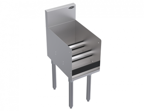 Royal Series Underbar Liquor Bottle Display Unit, freestanding, 12"W x 19"D, holds (9) liquor bottles, (3) bottle steps with guard rails, stainless steel top, front, & sides, stainless steel legs with adjustable thermoplastic bullet feet