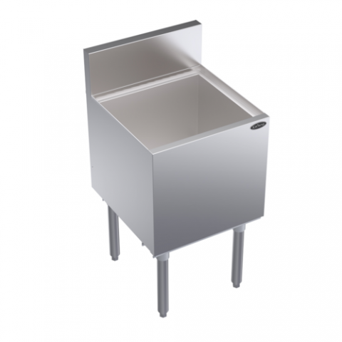 Royal Series Underbar Ice Bin/Cocktail Unit, 18"W x 19"D O.A., 73-lbs ice capacity, 15" deep stainless steel bin liner, stainless steel top, front & sides, galvanized steel back & bottom, stainless steel legs with adjustable thermoplastic bullet feet, NSF